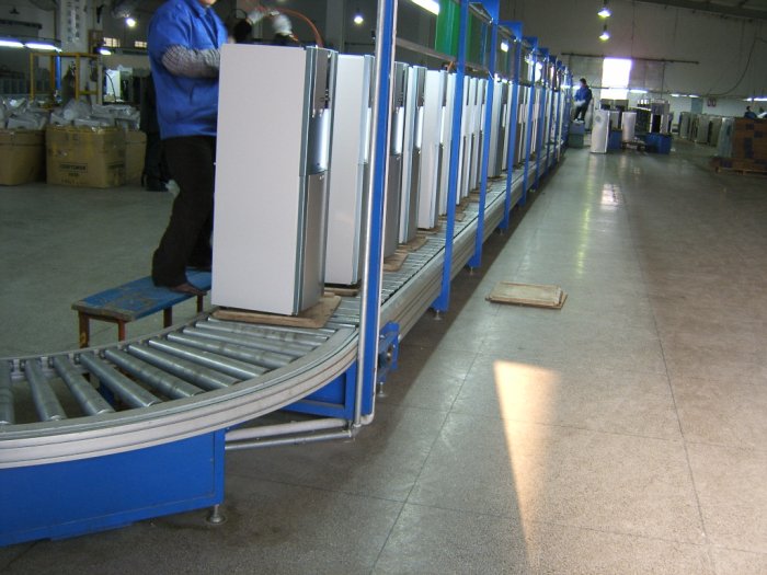 錕道線有兩個(gè)大類。其一是有動(dòng)力,其二是無(wú)動(dòng)力,這個(gè)就是無(wú)動(dòng)力錕道線的一種。無(wú)動(dòng)力的基本原理就是利用物體的自身重力,使物體以均勻加速度自動(dòng)分配到各個(gè)工位。