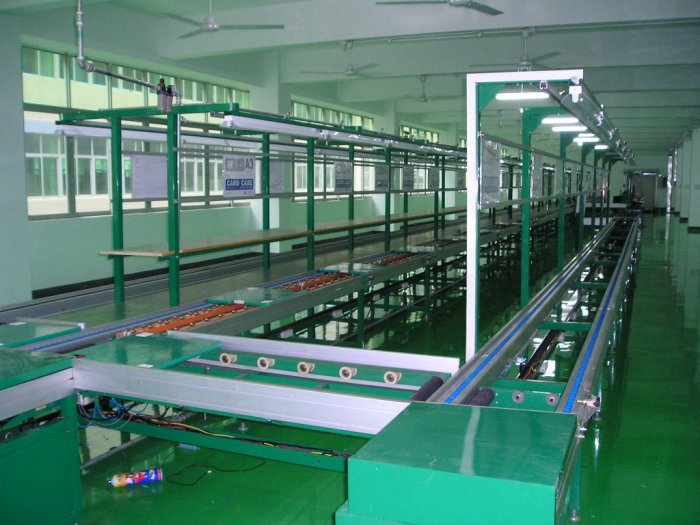 流水線又稱為裝配線,一種工業(yè)上的生產(chǎn)方式,指每一個(gè)生產(chǎn)單位只專注處理某一個(gè)片段的工作,以提高工作效率及產(chǎn)量;按照流水線的輸送方式大體可以分為:皮帶流水裝配線、板鏈線、倍速鏈、插件線、網(wǎng)帶線、懸掛線及滾筒流水線這七類流水線。一般包括牽引件、承載構(gòu)件、驅(qū)動(dòng)裝置、漲緊裝置、改向裝置和支承件等組成。流水線可擴(kuò)展性高,可按需求設(shè)計(jì)輸送量,輸送速度,裝配工位,輔助部件(包括快速接頭、風(fēng)扇,電燈,插座,工藝看板,置物臺(tái),24V電源,風(fēng)批等,因此廣受企業(yè)歡迎;流水線是人和機(jī)器的有效組合,最充分體現(xiàn)設(shè)備的靈活性,它將輸送系統(tǒng)、隨行夾具和在線專機(jī)、檢測(cè)設(shè)備有機(jī)的組合,以滿足多品種產(chǎn)品的輸送要求。輸送線的傳輸方式有同步傳輸?shù)?(強(qiáng)制式),也可以是非同步傳輸/(柔性式),根據(jù)配置的選擇,可以實(shí)現(xiàn)裝配和輸送的要求。輸送線在企業(yè)的批量生產(chǎn)中不可或缺。